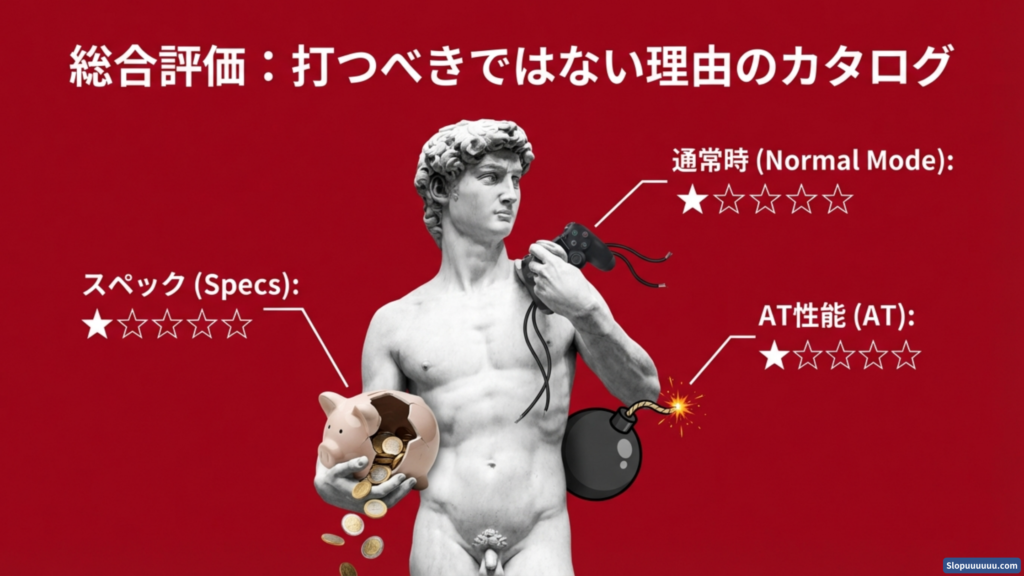 スペックの数字が物語るように、これは遊べる台ではなく資金を吸い上げる台です。